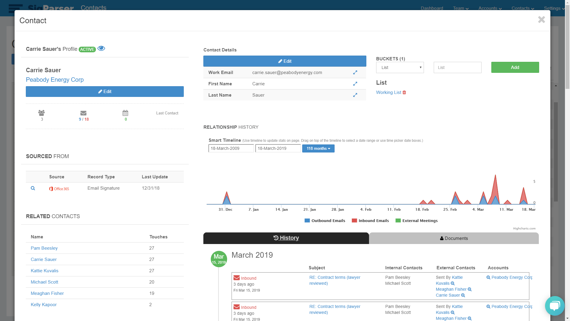 SigParser can also go back in time to find historical emails.