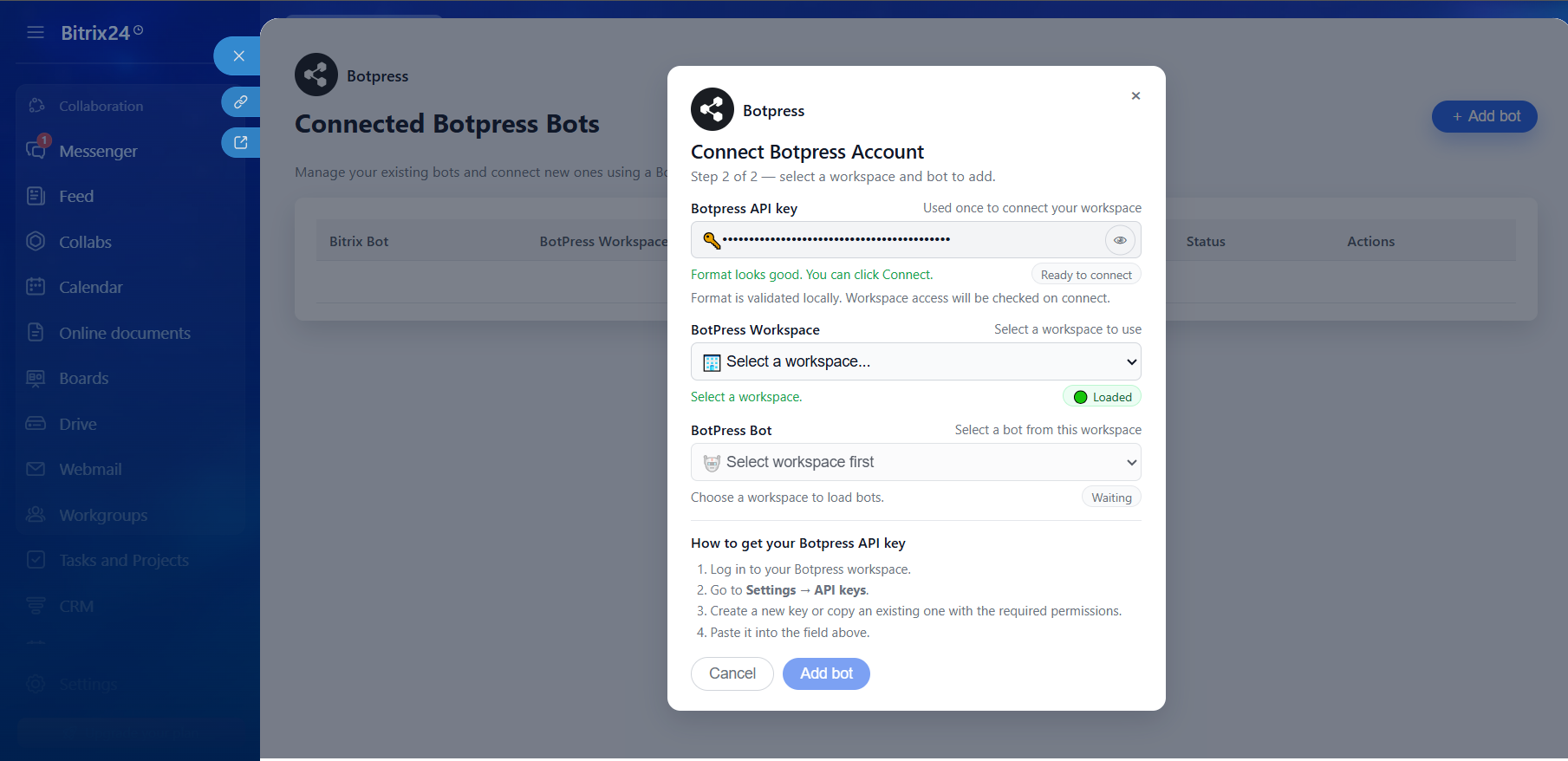 With the Botpress + Bitrix24 Open Lines integration, every incoming chat gets an instant response — 24/7, even when your team is busy or offline.