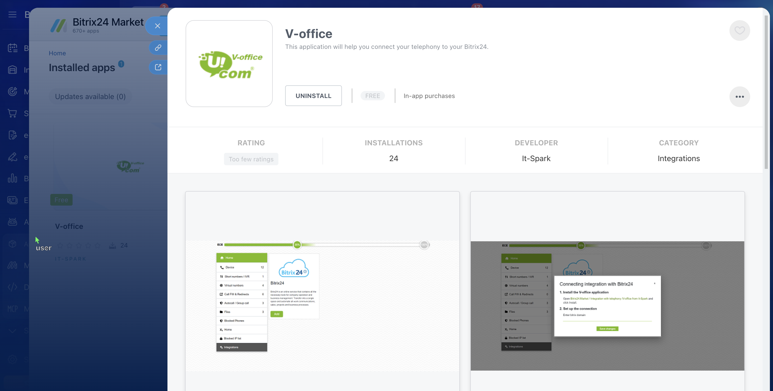 Integration capabilities of V-office Virtual PBX and Bitrix24: