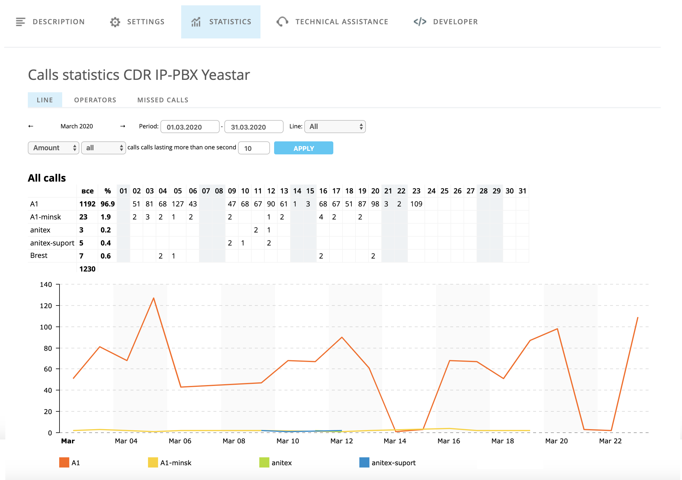- Registering all missed calls (both for calls that have reached the internal number and those who hang up while listening to IVR)