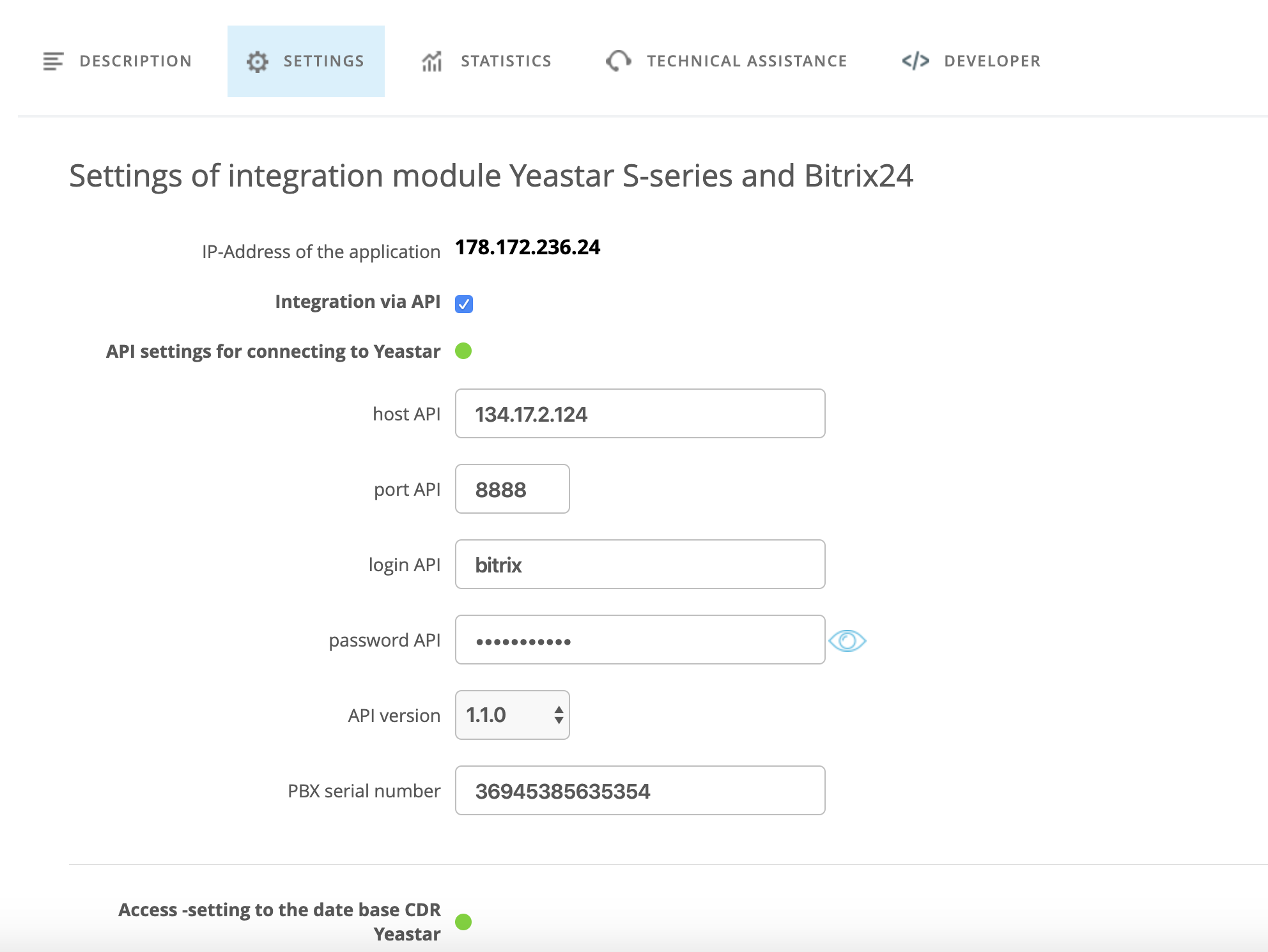- The application comes with technical support from the developer, which includes customization advice, and constant updates to the application under the latest versions of the Yeastar S Series IP-PBX firmware and Bitrix24 updates.