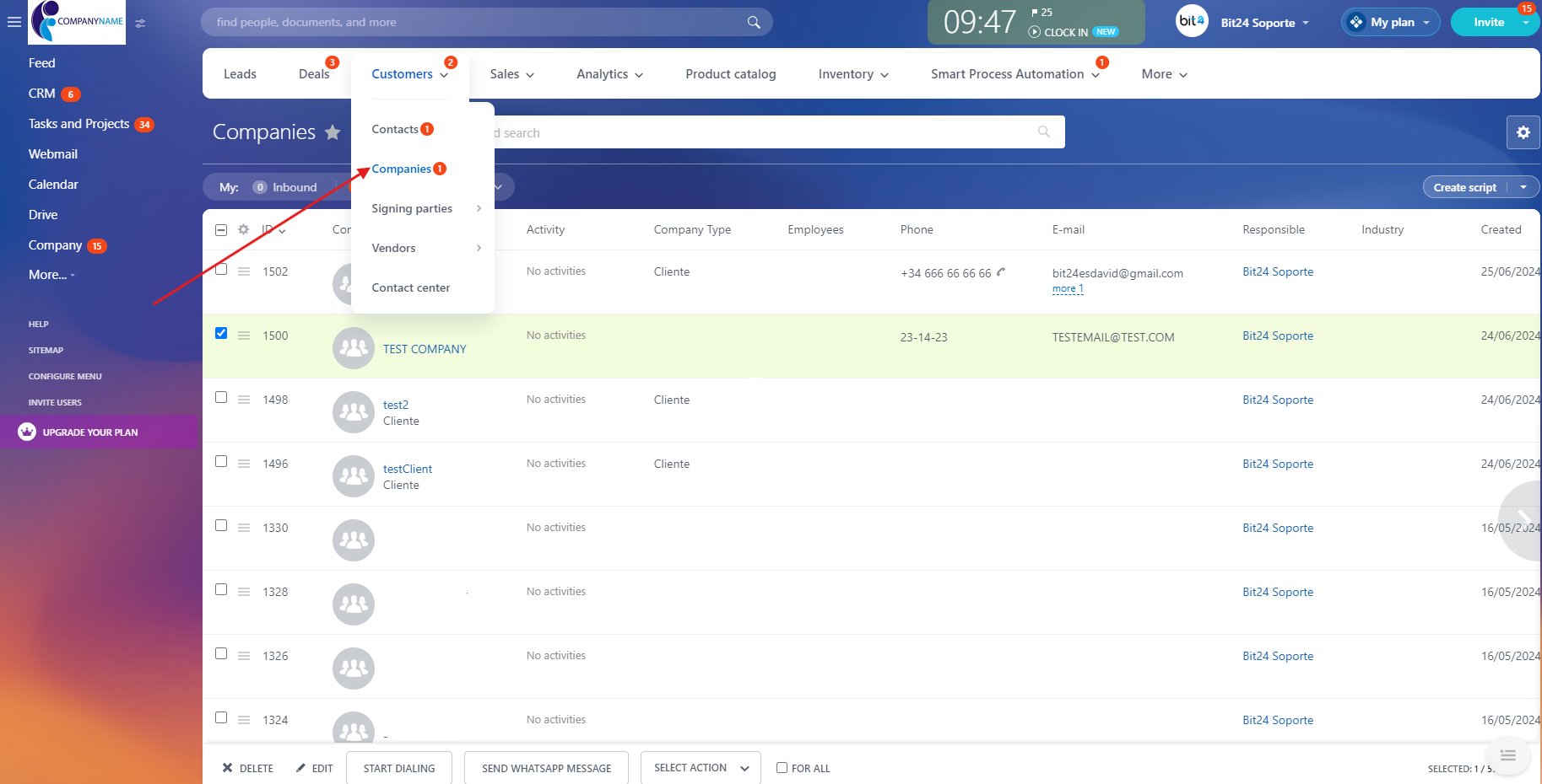 You can send your Companies from Bitrix24 are exported to Fandit with all the information.