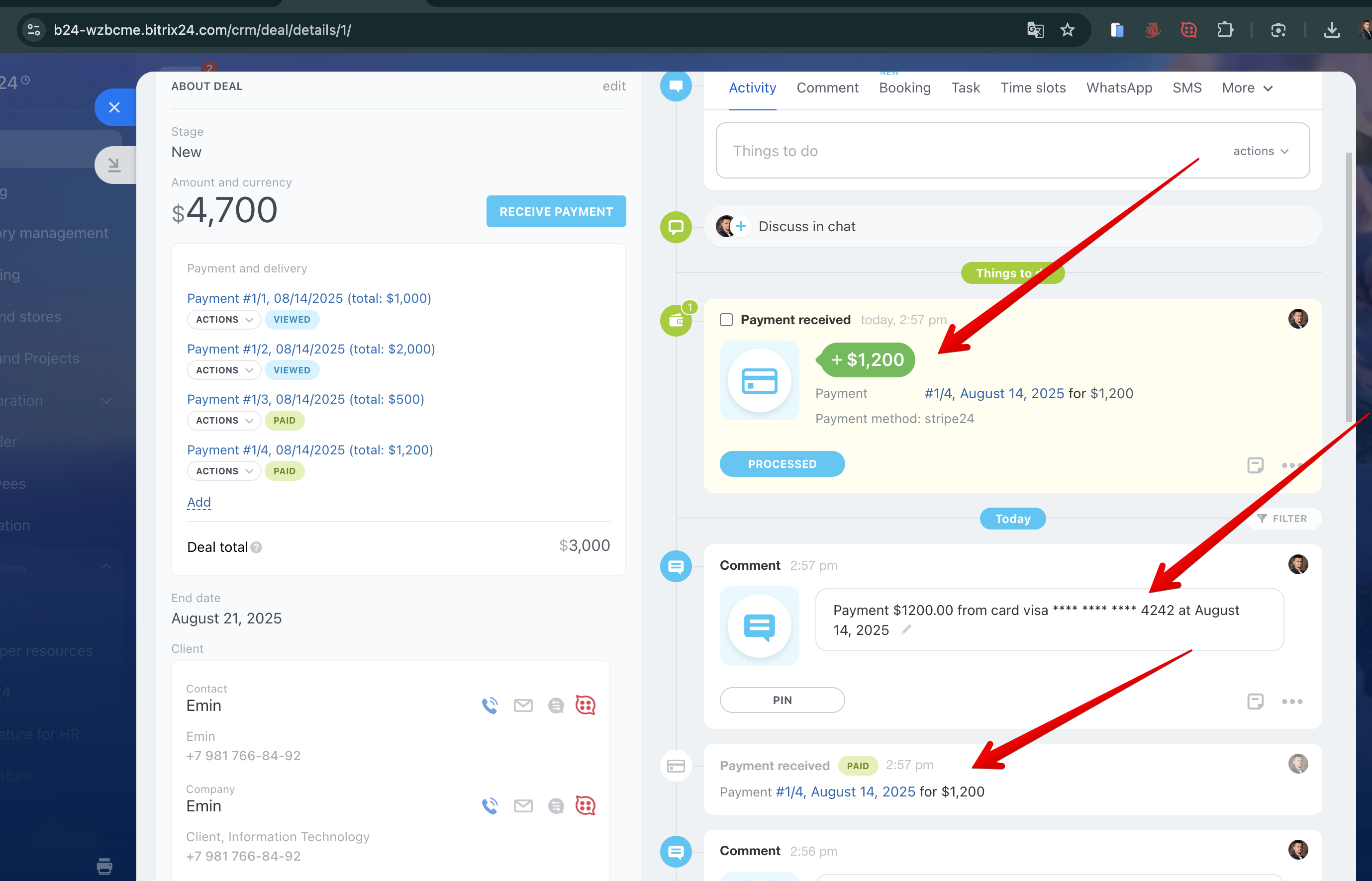 Automation Support: Trigger Bitrix24 automation rules after successful payments.