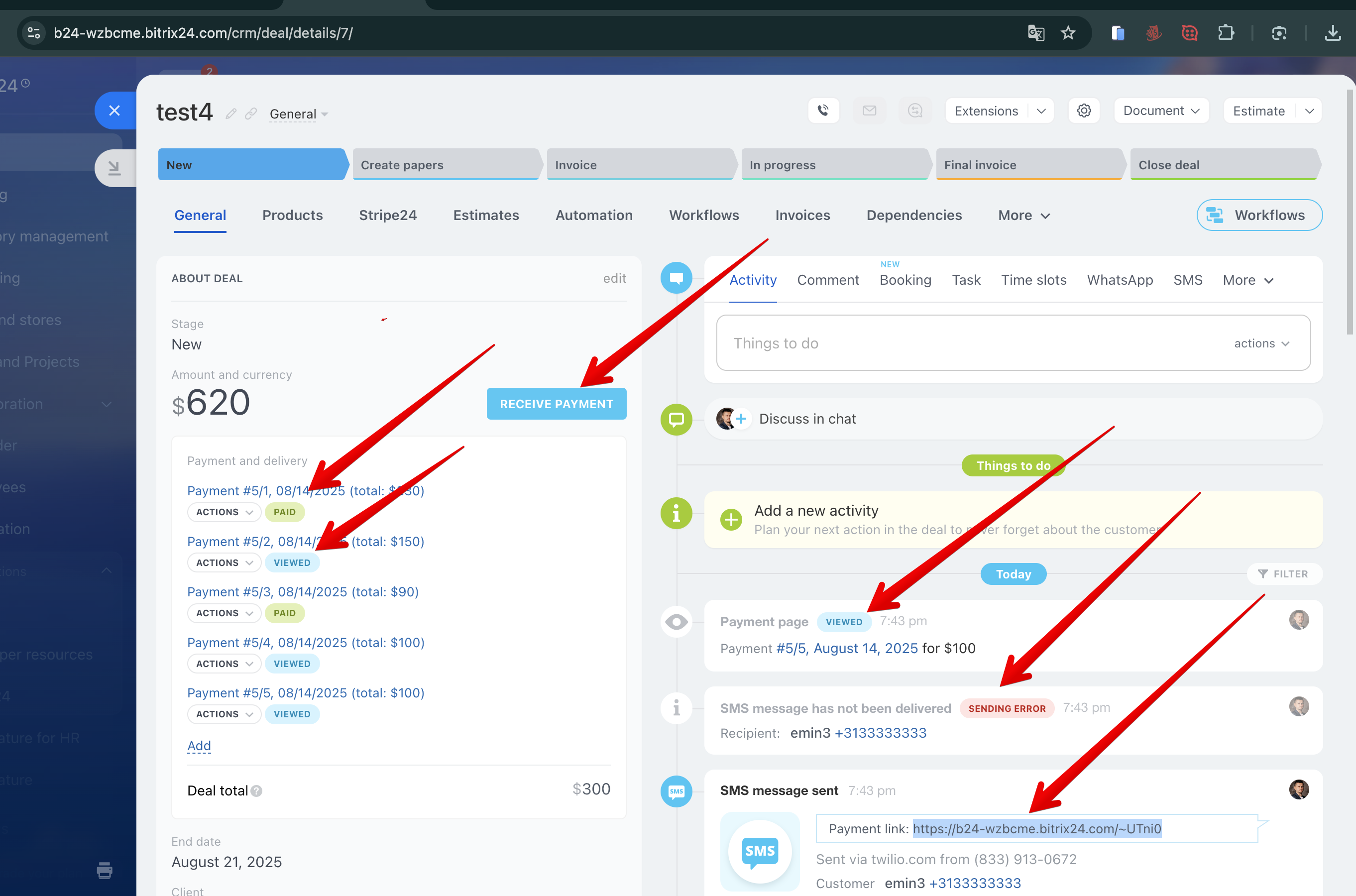 Payment Link Generation: Create secure Stripe payment links from Bitrix24 deals or invoices in one click.