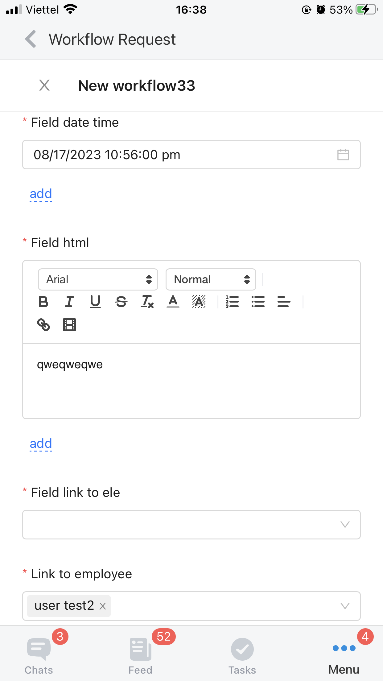 Submit Workflow Request In Mobile App ( by First Mind Software )