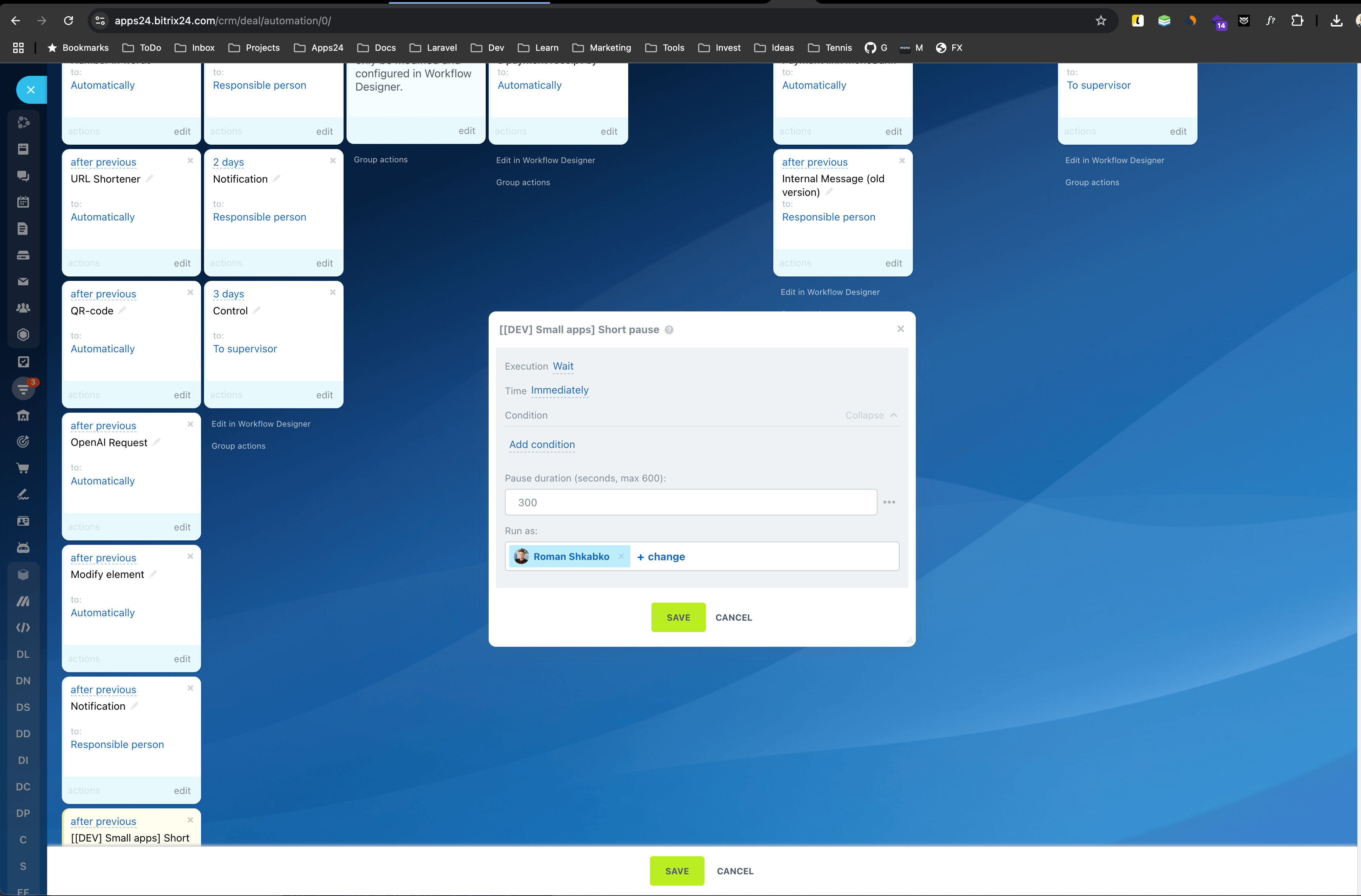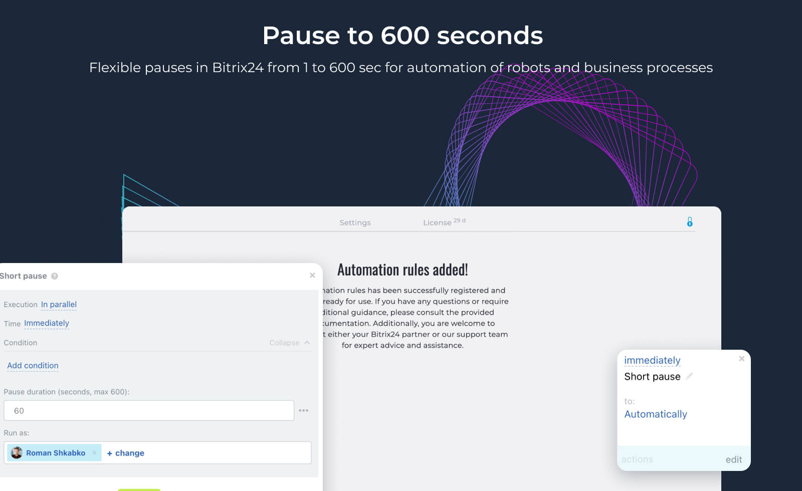 Pause in Bitrix24 from 1 to 600 seconds for flexible automation