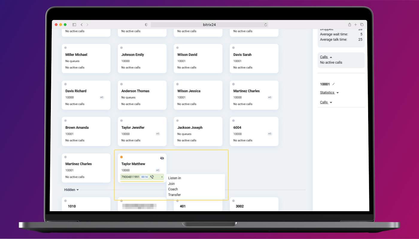 Main featuresMonitor your agents: it becomes clear, who is busy and who is free, and what queues they are in.