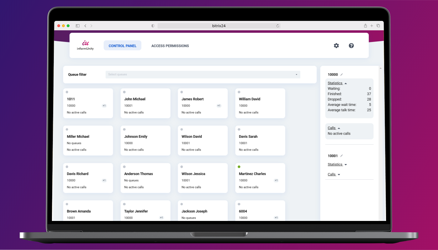 This is a tool created to control a call center. It is integrated with Bitrix24 and Asterisk. It gives you full control over calls and agents calls in real time.