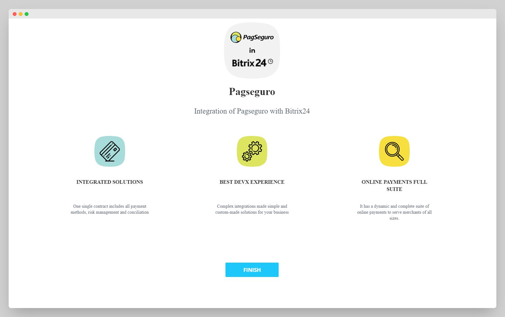 Once your client receives a payment or invoice link, they will be able to pay for the order by clicking on the option button of an enabled method. The invoice status in Bitrix24 will be changed automatically once the payment is processed by PagSeguro.