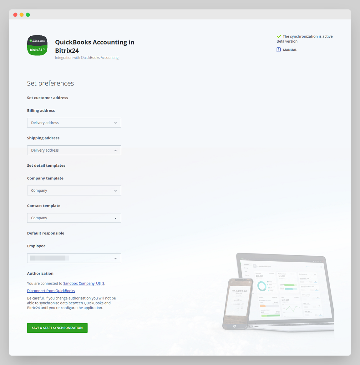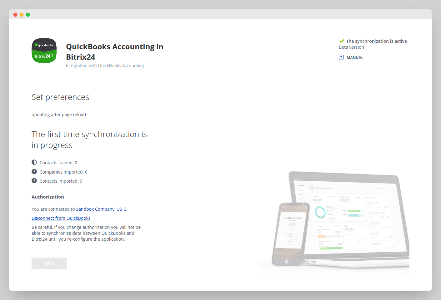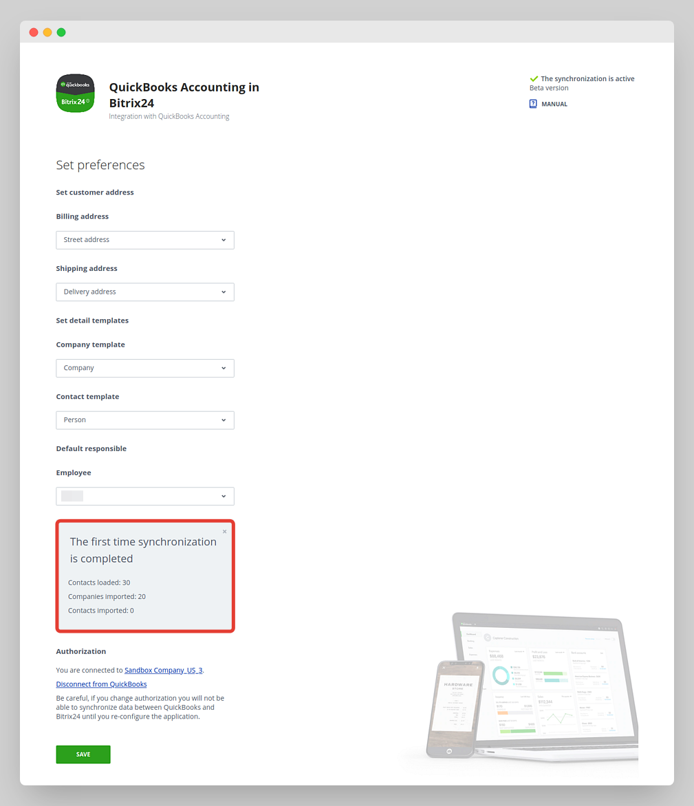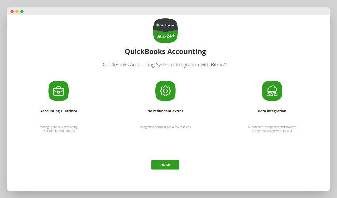Your Bitrix24 CRM retrieves QuickBooks Online (QBO) customers during the first-time synchronization. Now the QuickBooks-generated customers will be automatically synchronized with your Bitrix24 account.
