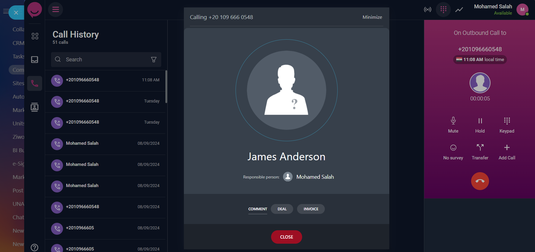 Now, with just a click on the customer's number or the number in your contacts, you can instantly make a call through Ziwo.