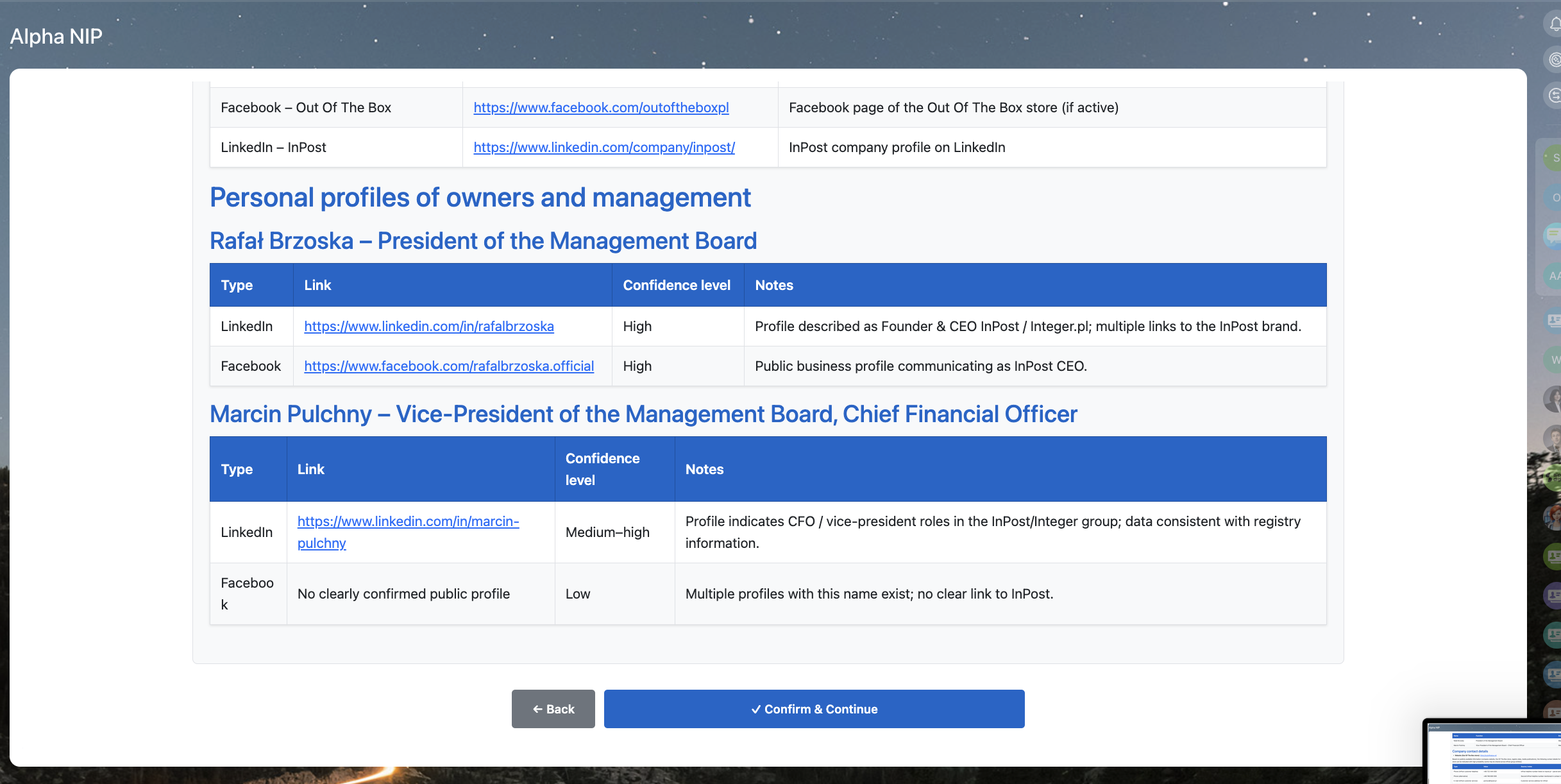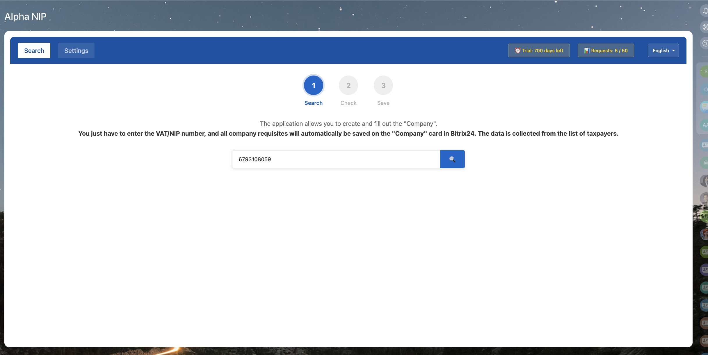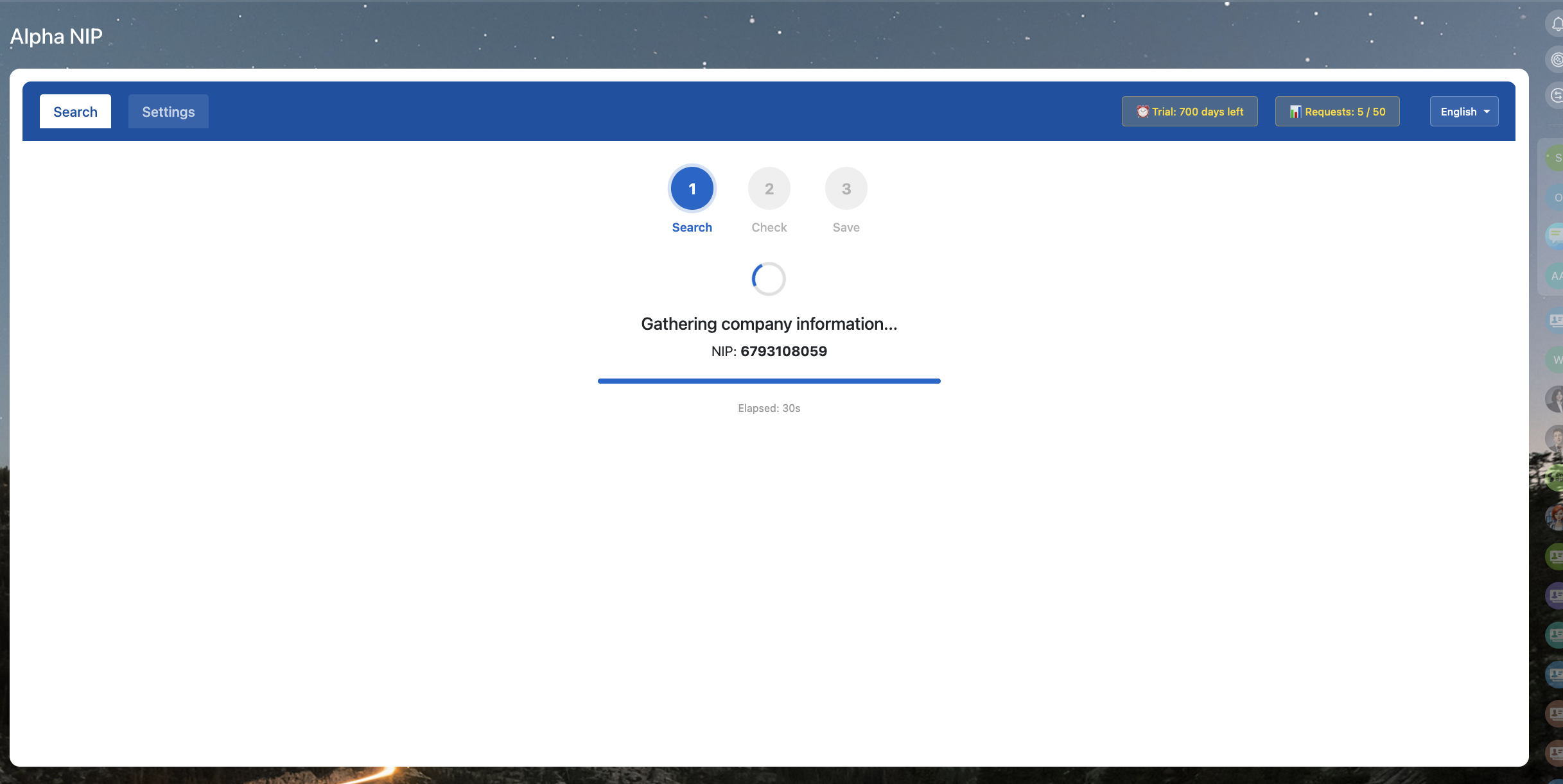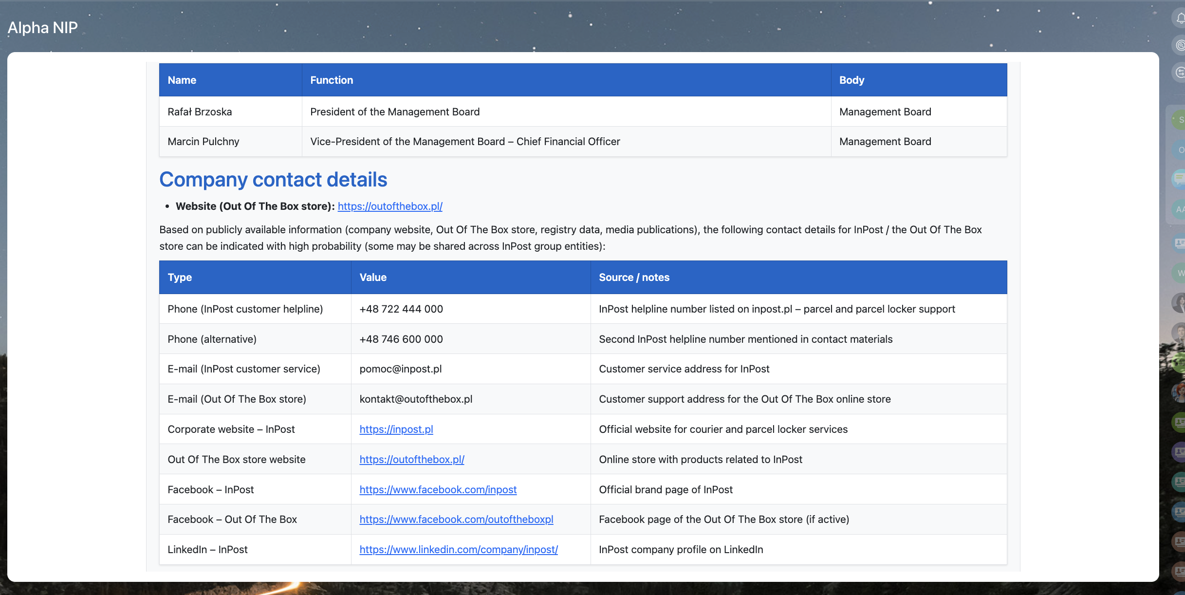 AlphaNIP+AI automatically collects company info based on NIP